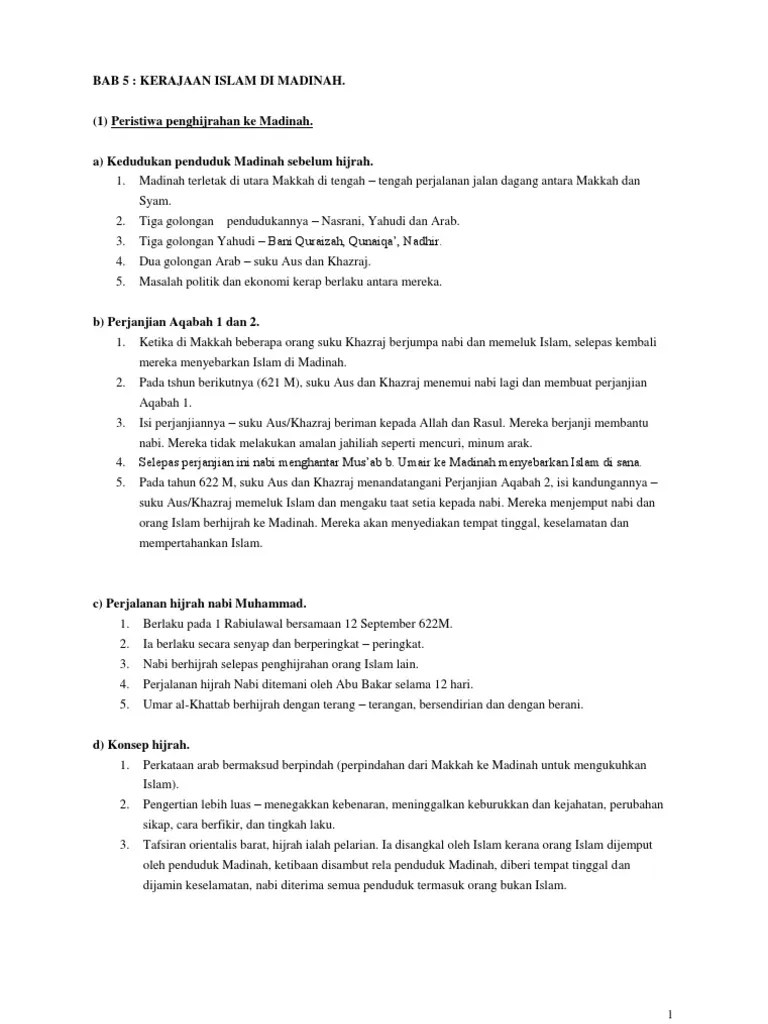 Pengenalan (5 markah) jelaskan latar belakang negara kota madinah di tanah arab sebelum kedatangan islam 2. F6 perjalanan memakan masa lebih kurang 12 hari 7. F7 semangat ingin berubah 8. Sebab dan tujuan hijrah (5m) iii. May 23, 2019 · skema jawapan kerajaan islam di madinah (sejarah kertas 3 spm bab 5 tingkatan 4) soalan :