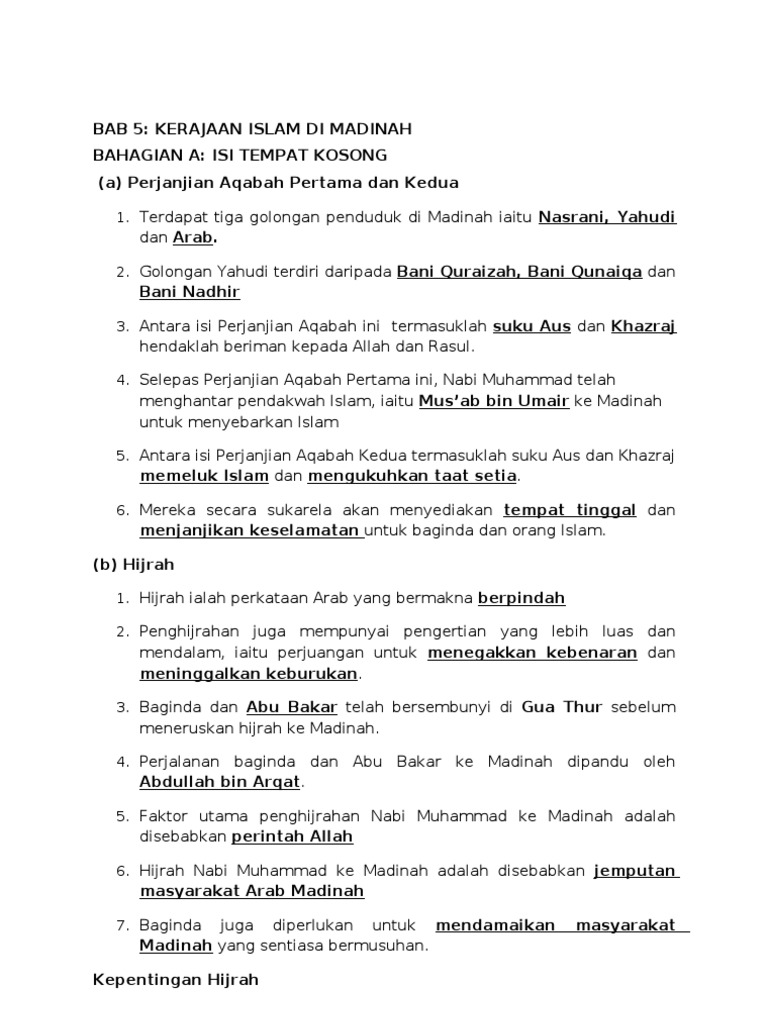 See full list on permohonan.my Soalan : huraikan peristiwa hijrah nabi muhammad s.a.w dan umat islam dari makkah ke madinah dan hubungkaitkannya dengan peranan rakyat malaysia dalam memajukan negara. Kertas 3 sejarah jawapan bab 5 ting 4 piagam madinah. F5 meneruskan penyebaran islam 6. F3 berlaku secara rahsia 4.